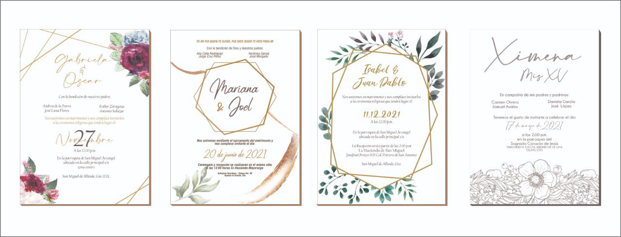 En el caso de las invitaciones impresas serán de acuerdo al catalogo ๐ se